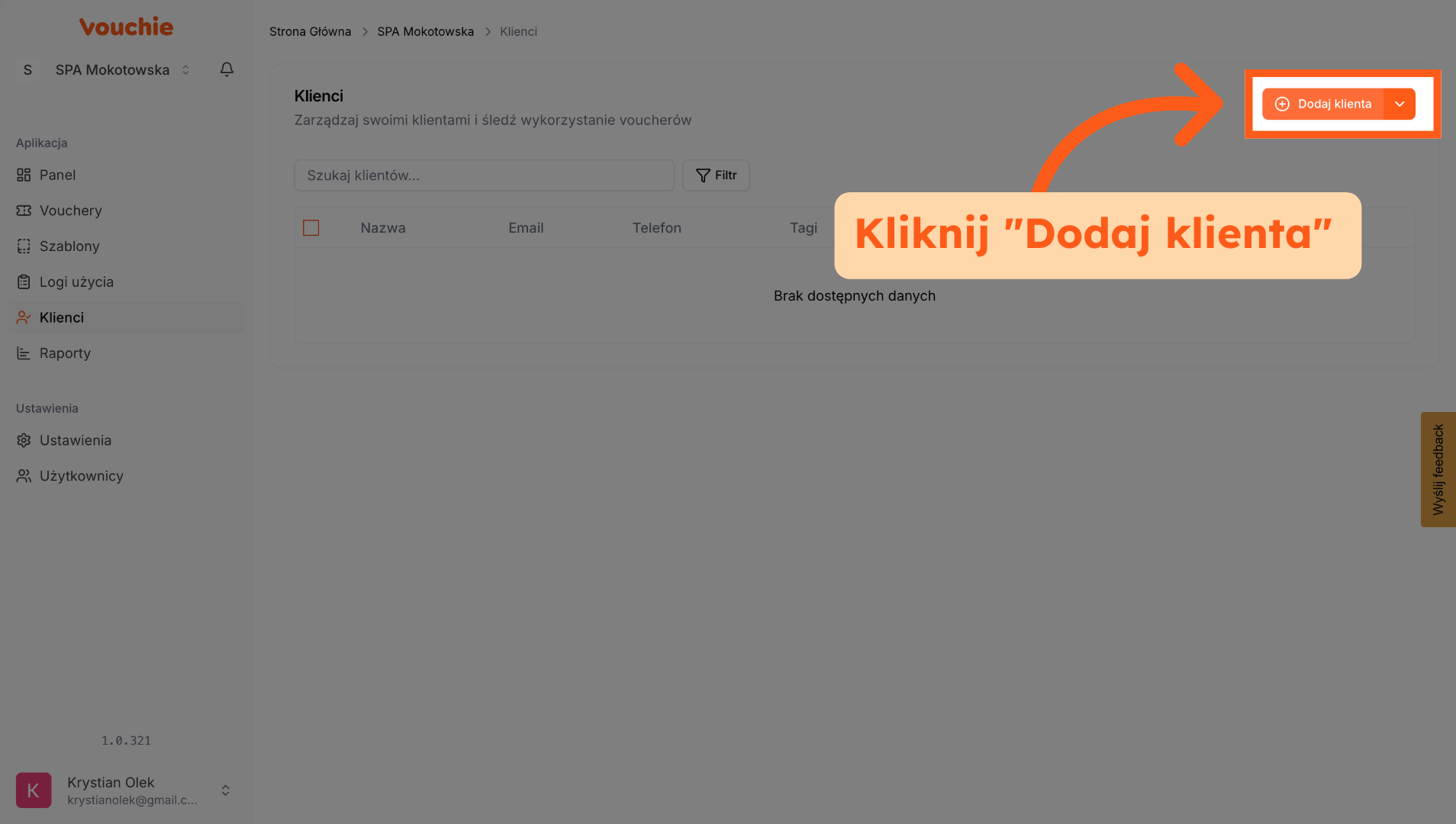 W tym przewodniku nauczysz się, jak dodać pojedynczego klienta lub zaimportować ich wielu z pliku CSV w aplikacji Vouchie.