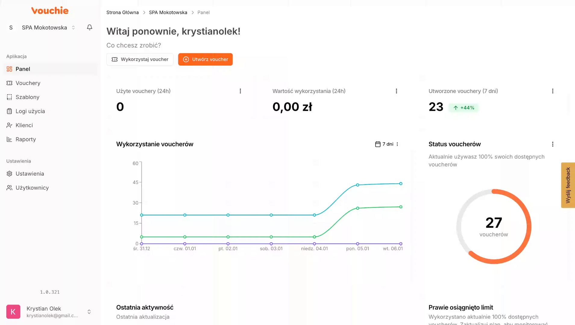 Dostępna zarówno z poziomu Pulpitu (Dashboard), jak i zakładki Vouchery.
