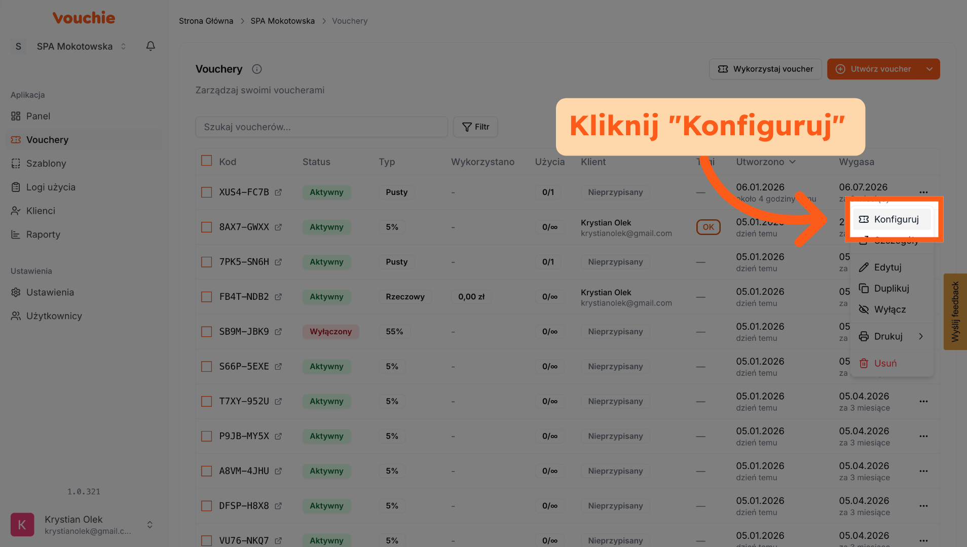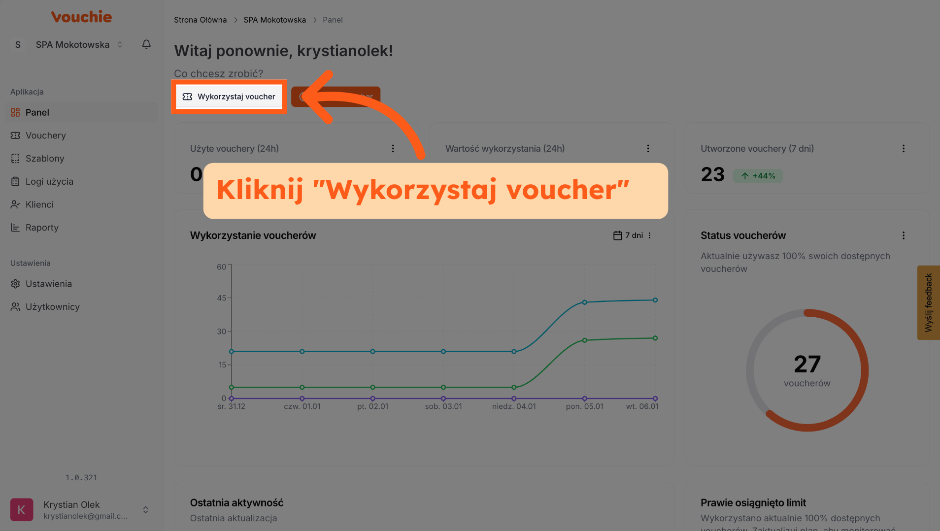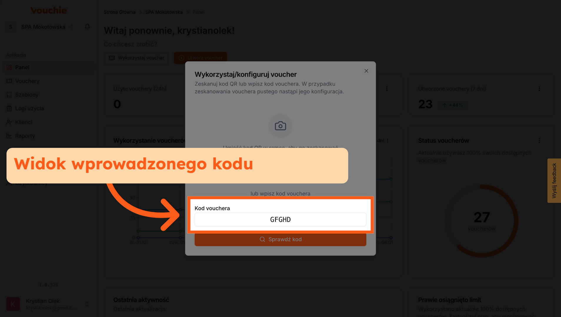 5. Wykorzystaj Voucher z widoku sekcji Vouchery